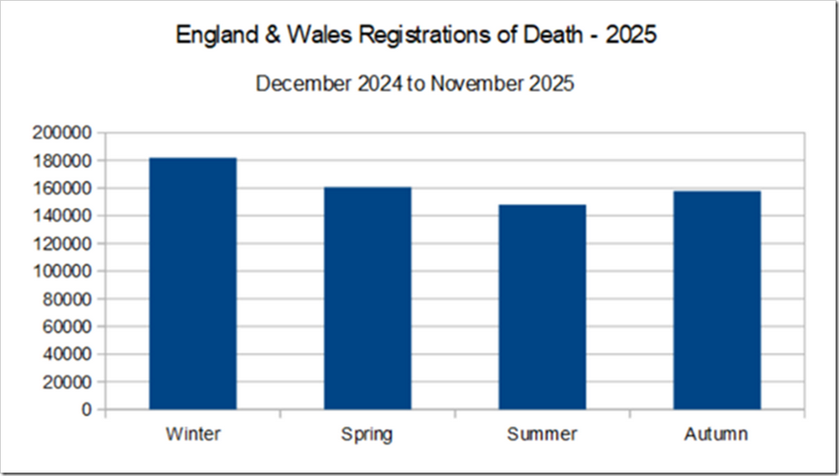 Strangely, the UKHSA have been publishing these statistics only since 2024. One might therefore reasonably presume that this is just another scare story to sell Net Zero. After all, they never publish excess death statistics for spring and autumn when the death rate is much higher.