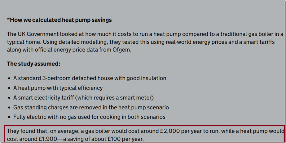 To persuade the public to switch, the Government is running a campaign falsely claiming that heat pumps are cheaper to run. They claim that you can save around £100 a year.