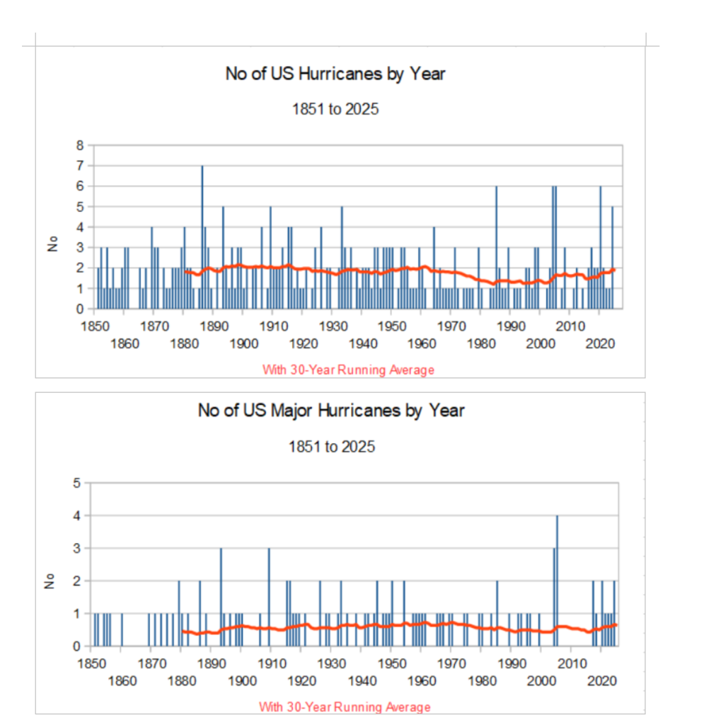So why, as recently as two months ago, did the BBC weathergirl Sarah Keith-Lucas tell BBC viewers that ‘the frequency of very intense hurricanes such as Melissa is increasing’?