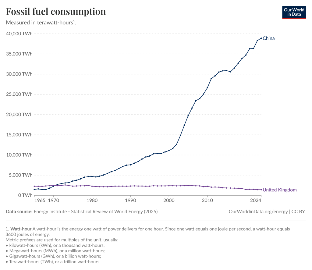 As for wind and solar power, it provided 18 per cent of China’s electricity in 2024, half of the 36 per cent figure for the UK. China has not the slightest intention of giving up coal or other fossil fuels; that is why it opened 78GW of coal power capacity last year, with another 83GW under construction. Together, this will increase total coal power capacity by 13 per cent.