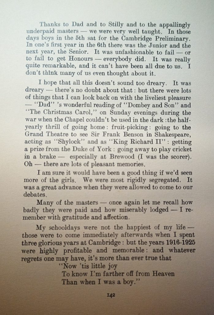 In 1950 Harding contributed to A History of The Royal Wolverhampton School 1850-1950 which was privately published to celebrate the school’s centenary. Copies were given to the governors, staff, local and visiting VIPs, the Home Office and the Royal Family. After a passing mention in a comment on an earlier article in this series, I was contacted by a reader who sent me copies of the four pages that Harding wrote. I think TCW can reasonably claim a world exclusive!