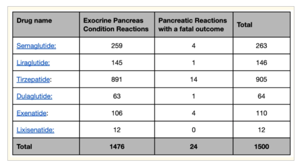 But the drugs can be lethal. In the UK, the Medicines and Healthcare products Regulatory Agency (MHRA) has received reports of 24 deaths due to pancreatic issues and 151 deaths associated with six different GLP-1 drugs.