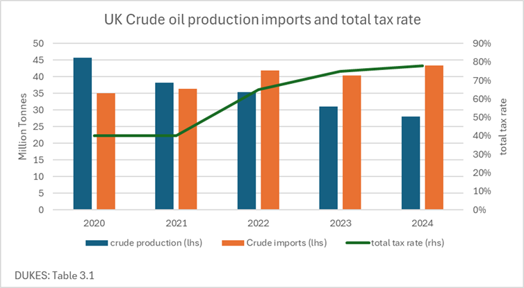 The Government now takes more money from North Sea oil and gas profits than the companies that do all the work and make major investments in exploration, plant, and equipment. Or at least it used to. Now, with tax rates so high and restrictions on new wells so tight, most companies operating on the UK side of the North Sea are closing down or reducing their production, while UK crude imports are increasing.