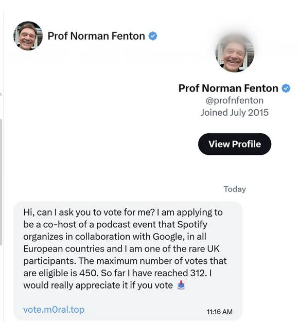 At the same time, I have been completely cut off from a platform I rely on professionally. I used my account to promote my last book in 2024 and was about to begin publicising my next to my 93,400 followers when this happened. That opportunity has now been derailed, and the credibility of the account itself may be permanently compromised. Years spent building a trusted audience have, in effect, been handed over to scammers, who it seems are currently getting more practical support from X than I am.