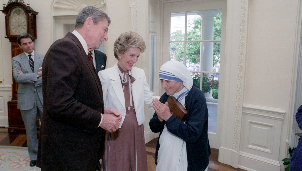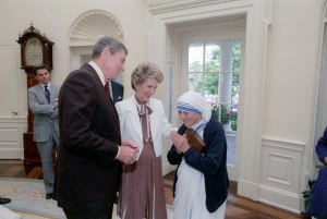 The featured image is a photograph of President Ronald Reagan and Nancy Reagan with Mother Teresa, taken on 20 June 1985, and is in the public domain, courtesy of Wikimedia Commons.