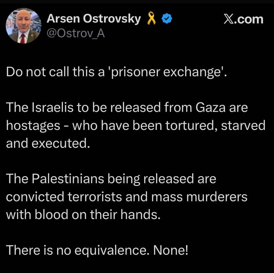 And it’s at tremendous disproportionate advantage to them. As Israel gets back 20 tortured, kidnapped civilians and Hamas gets back nearly 2,000 murderous terrorists, it’s hard to imagine a deal more beneficial for the Palestinians. There’s a 100-1 ratio there, and no parity at all between the people being saved and released: